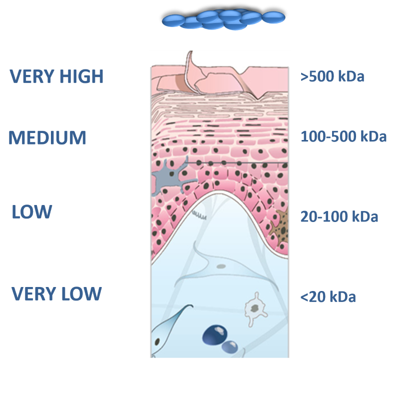 Hyaluronsäure aus 4 unterschiedlichen Molekulargewichten um die Haut in der Tiefe mit Feuchtigkeit zu versorgen und sie auch vor vorzeitigem Wasserverlust durch äußere aggressive Einflüsse zu schützen.